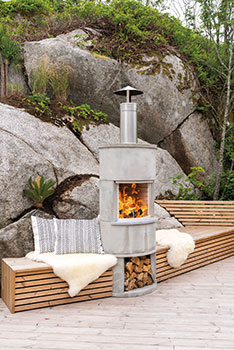 With an elegant and modern cylindrical exterior and made from lightweight concrete, the Nordpeis Roma outdoor fireplace is easy to assemble and install and makes an instant freestanding al fresco statement. The combustion chamber offers an optimal view of the flames and finished in light-coloured Thermotte™, which is extremely durable and shock-resistant. The Roma also comes with a removable grill that can be easily slotted inside the chamber with the provided tools for cooking your own outdoor cuisine.